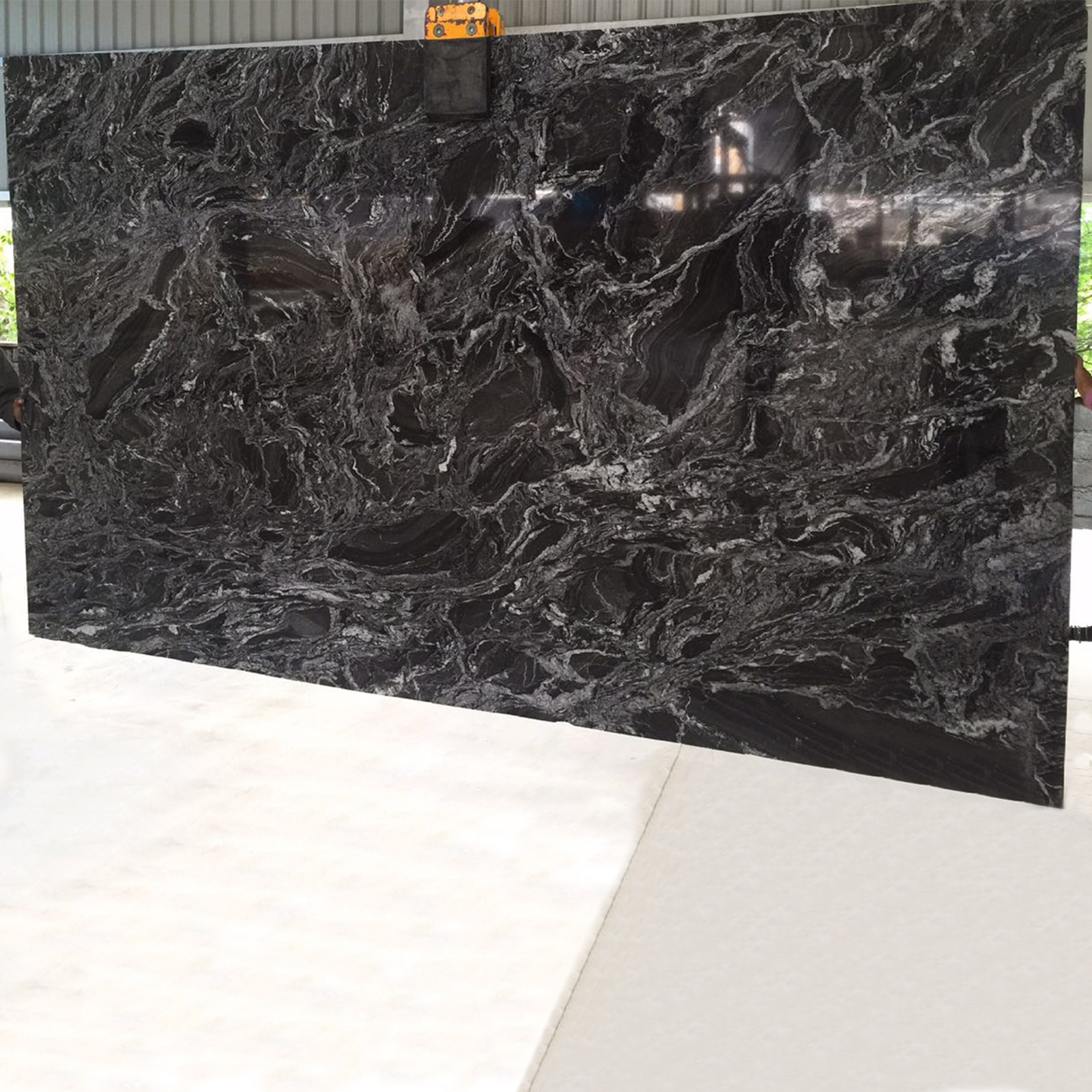 With snow-white swirls and stripes, this beautiful black granite from South India can quickly boost the aesthetics of any interior or exterior.