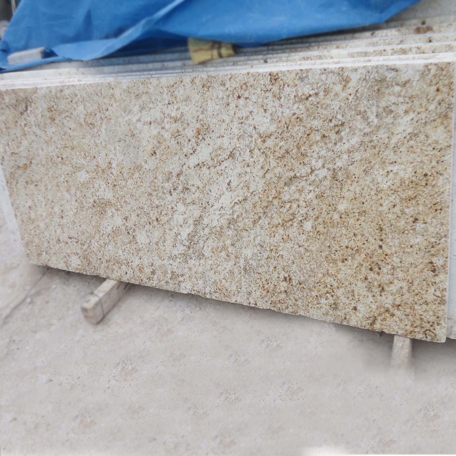 We are one of the best manufacturers and exporters of Indian Granite and offer high-quality Colonial Gold Granite in different sizes and finishes. This beautiful granite comes from the quarries located in Tamil Nadu. The stone may have significant color variations as it can have big patches of gold that can vary greatly in size and shelter up to 70% of the stone’s surface. This is why you may not two identical slabs of Colonial Gold Granite.