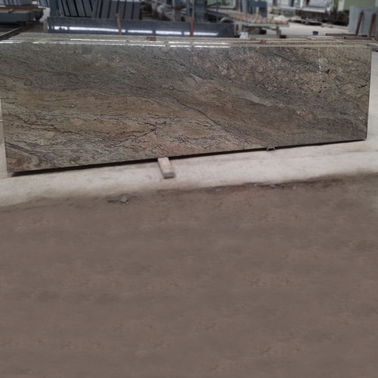 Surf green stone product has a light green background with numerous swirls and streaks in different shades of green, brown, and grey. Quarried in South India, this granite has a very soothing look and is best suited for spaces with minimalist decor. This product is available here at an affordable price tag.